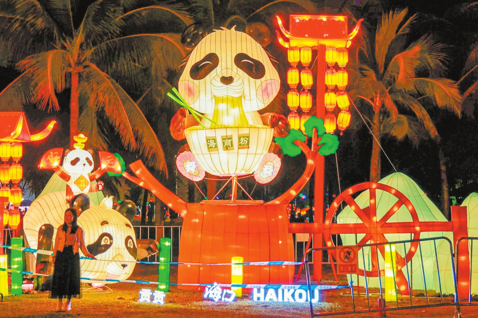 万春会“万灯耀海口,春意满琼州”大型灯展在万绿园亮灯,具有海南元素的花灯格外吸引市民游客的目光。