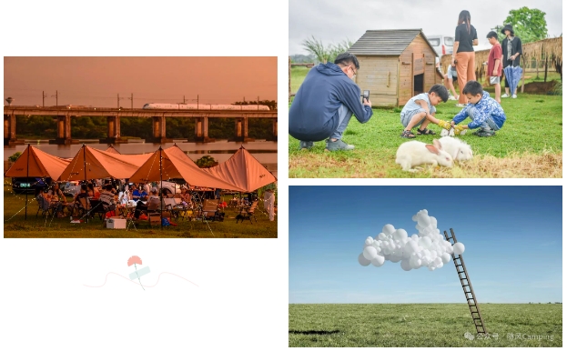 公园特色:露营(音乐会、户外烧烤、围炉煮茶、精美餐食饮品),还能拍到落日飞机动车同框。