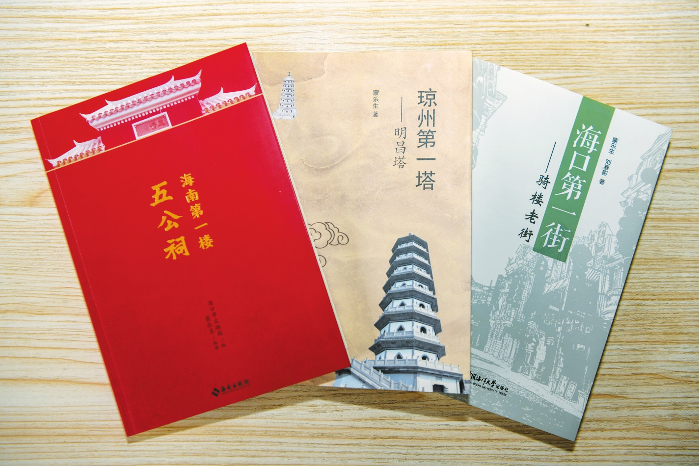 二十几年的行走与探寻,蒙乐生奉献了一摞摞厚重的17部书籍,《人文圣地火山口》《蓝色海岸白沙门》《文化峰峦大英山》《古城琼山》《锦绣龙华》《海南斋戏》《婆祖信俗与军坡传奇》《有海有口——海口文脉与城市精神》……这是蒙乐生对海南的赤诚与热爱,他的著作不仅是学术研究的宝贵资料,更是传承海口文化的重要载体。