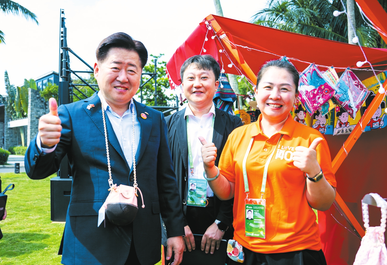 3月27日,在东屿岛文化公园海口城市展,来自韩国的嘉宾与工作人员合影留念。本报特派记者 杨忠凯 摄