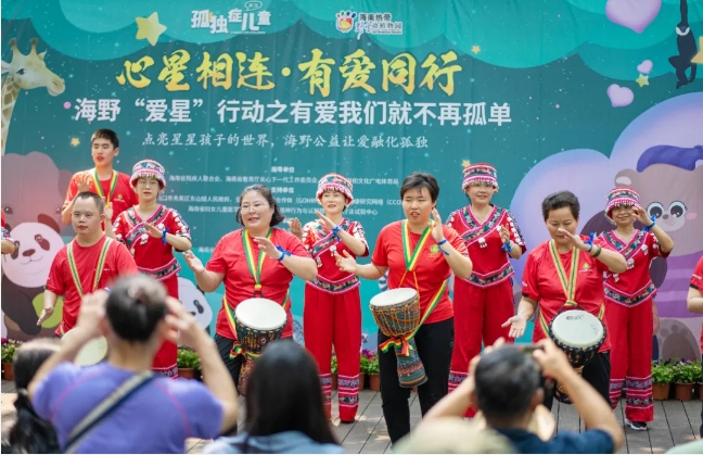 在海野中心区公益宣传活动的现场,星娃与家长们还为现场观众献上了精彩的表演。许浩宇小朋友用葫芦丝演奏了经典曲目《龙的传人》,悠扬、独特的音色不仅传达出对祖国的自豪与喜爱,温柔中更是带着一份独属于星星孩子的自信与力量!赵婧文、邓黄友等孤独症孩子和他们的家长以活泼奔放的舞蹈,热情的非洲鼓点为观众带来了丽江三部曲、最好的舞台、赶花街的精彩表演。他们用激情的鼓点和美好的旋律诉说自己的心声,希望社会各界更多地了解、理解、支持孤独症,帮助他们更好地融入社会。