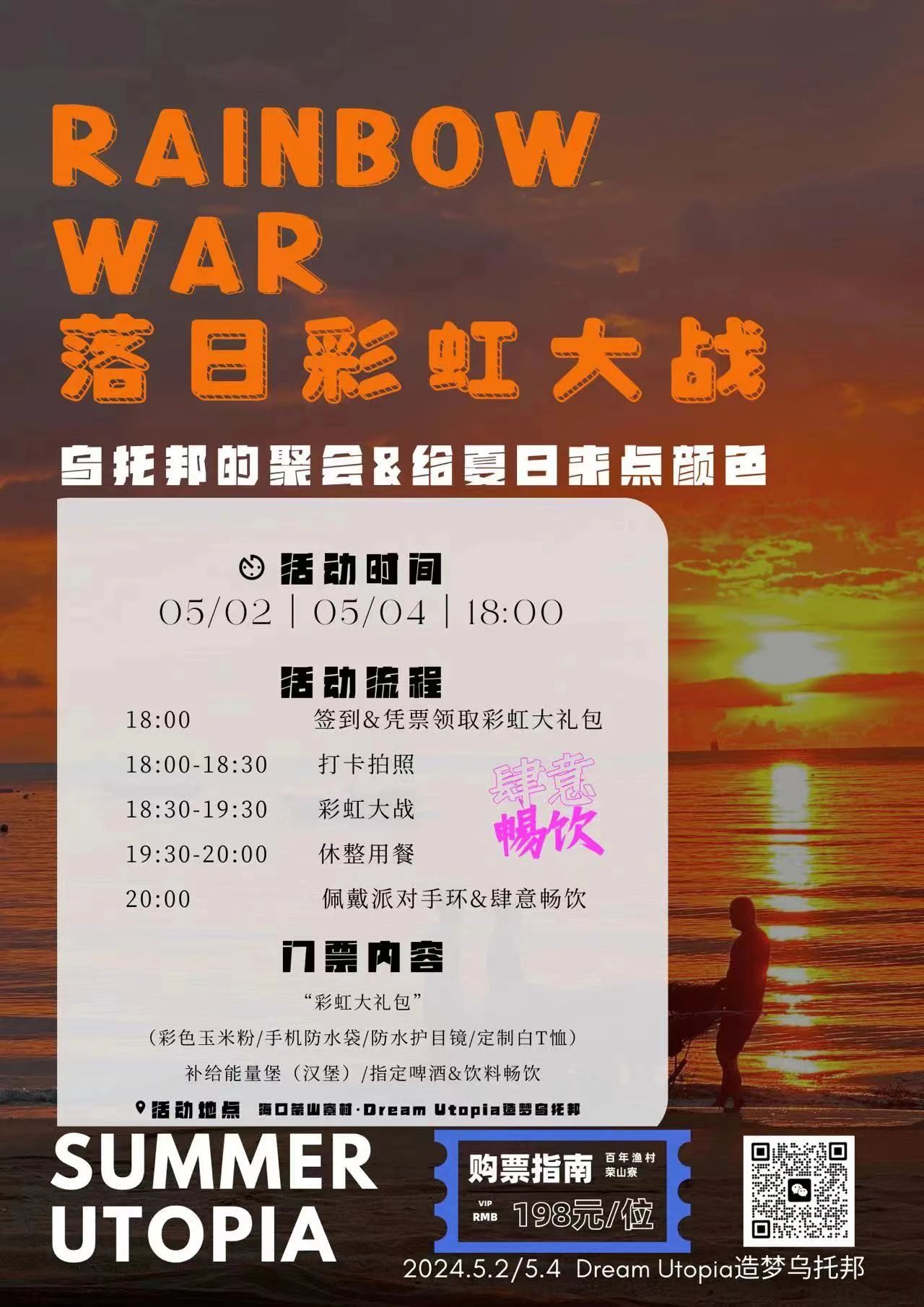想体验最狂野浪漫动感的热带海岛滨海游吗?这个五一,必须锁定海口市秀英区荣山寮夏日热浪派对。5月1日至5日,由空杯茶酒院、四重奏、福气社、造梦乌托邦、漂浮的人联合举办的荣山寮夏日热浪派对——荣山寮泼水狂欢月、电音比基尼派对、夏日电波狂欢将启航......