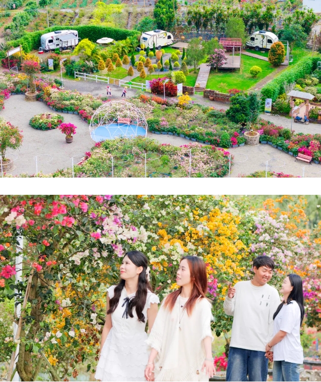 三角梅共享农庄2024年三角梅花展也将持续在“五一”假期展出,市民游客可观赏成片花海的田园风光,在农庄内的嗨KING露营基地,露营野餐,感受夏日的风与酒、浪漫和自由。