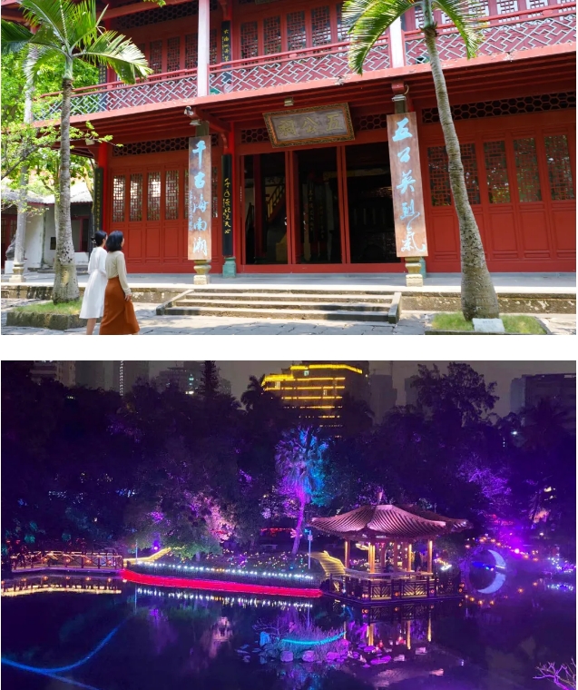 打卡五公祠打铁花·赏花灯夜游节暨第二季相亲交友庙会。这个假期,千年非遗打铁花将重现五公祠,每晚2场,搭配有着“天下第一灯”美称的非遗自贡花灯和唐风宋韵的盛世古典舞,为游客营造如梦如幻的五公祠奇妙夜。近期火爆海口的知名相声演员梁子,也将继续反串可爱又迷人的王婆,用风趣幽默和爆笑表演为大家说媒拉纤,撮合姻缘。现场还将设置丰富多彩的游戏抽奖环节,为所有能够鼓起勇气上台的朋友们准备礼物。另外还将推出特色小吃排档,让味蕾也参与到五公祠的浪漫盛宴中来。