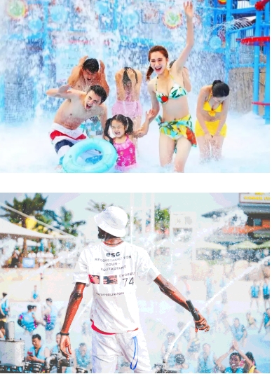 园区中LED大屏幕搭配欢乐的音乐,层层海浪涌起,时不时会听见同伴高喊“快跑”,仿佛瞬间回到了孩童时光!尖叫声、欢笑声不间断!那些难以掩盖的快乐,这就是夏天亲水季的专享。