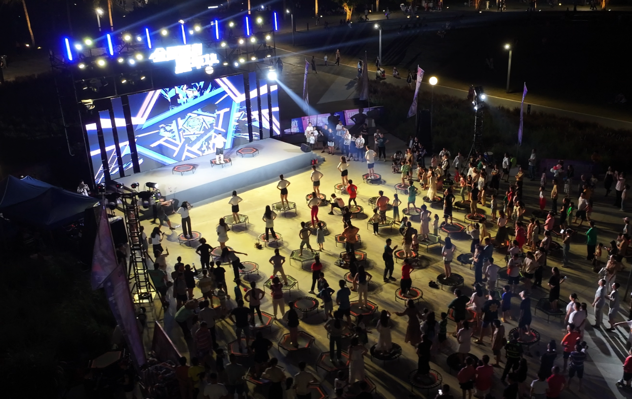 激情弹力绳、蹦床、壶铃、踏板、动感单车……开幕式当晚,面对现场琳琅满目的云洞器械器材,不同年龄段的市民游客摩拳擦掌,各自选择心动的项目,在晚风轻拂的海口外滩尽情享受运动的快乐。
