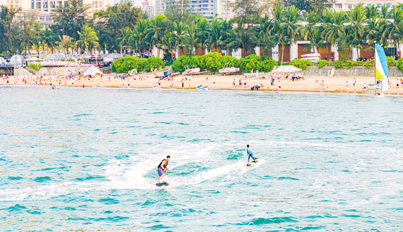 5月5日,市民游客在海口西海岸体验水上运动。本报记者 苏弼坤 摄