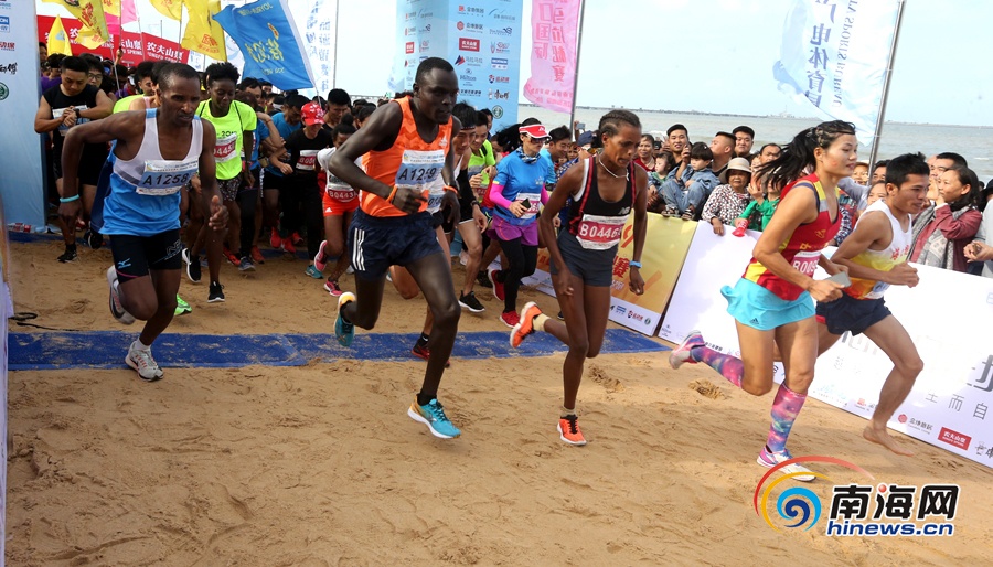2019第七届海口国际沙滩马拉松赛在海口假日海滩开跑。 南海网记者陈望 摄