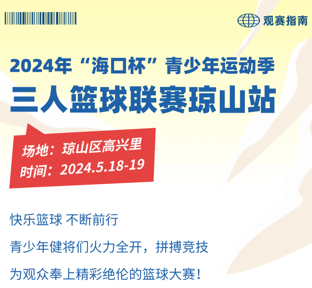 原标题;观赛指南 | 2024年“海口杯”青少年三人篮球联赛琼山站高兴里赛区即将激情开打