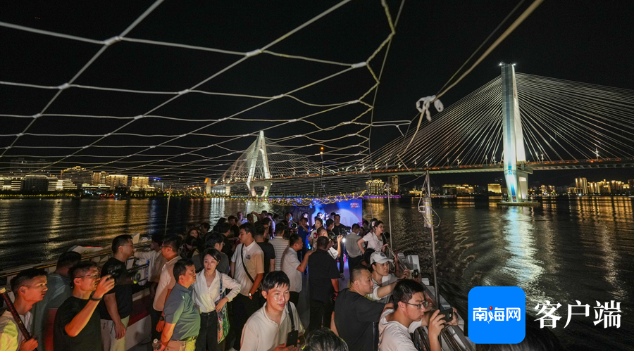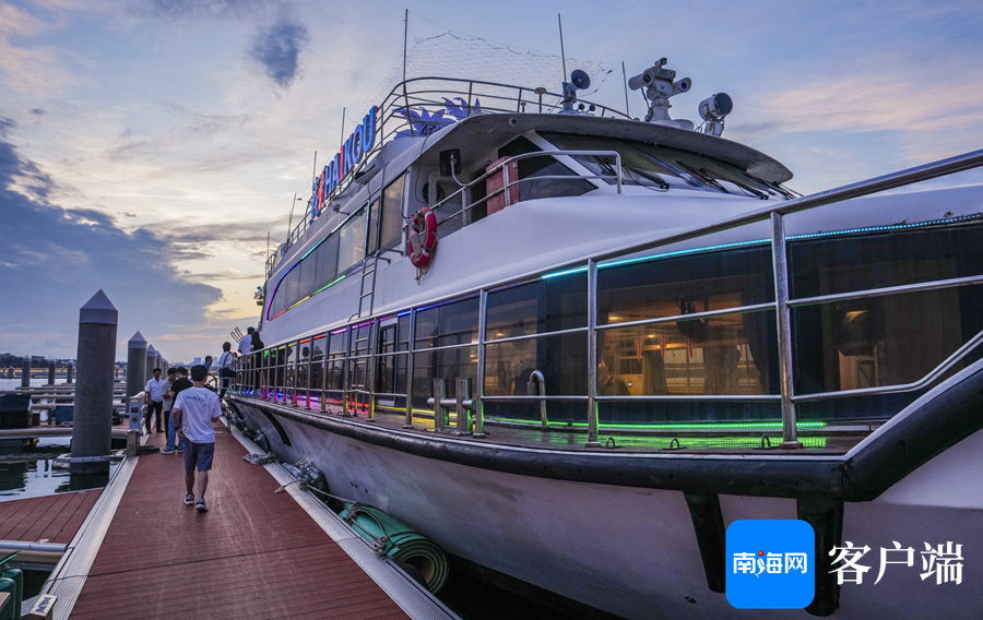 5月23日晚,在海口市国家帆船基地公共码头,随着一声汽笛鸣响,“海南之星”号游船缓缓驶出码头,开启了海上夜游之旅。当天,记者与乘客们一道登上游船,沉浸式体验海上看海口。