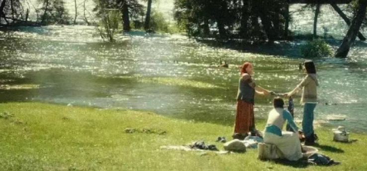 几人在河边洗衣服