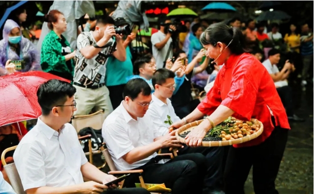 “斛”光施茶 ,火“荔”秀英,6月1日,2024年全国夏季“村晚”施茶村示范点展示活动在海口市秀英区石山镇雷琼海口火山群世界地质公园火热上演。