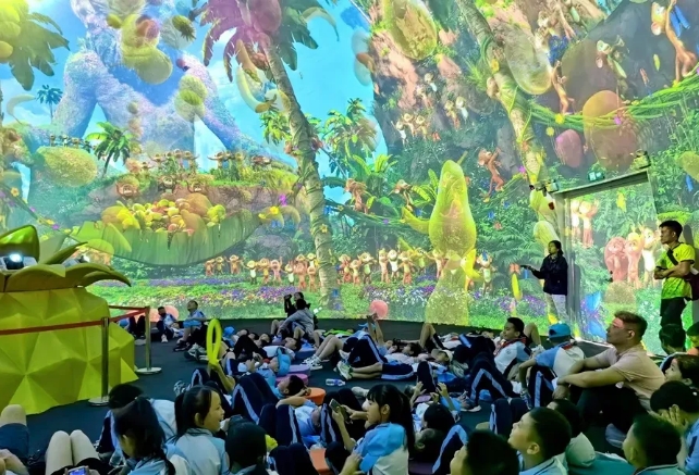 研学团走进南湾猴岛观看《猴岛传奇》天幕秀