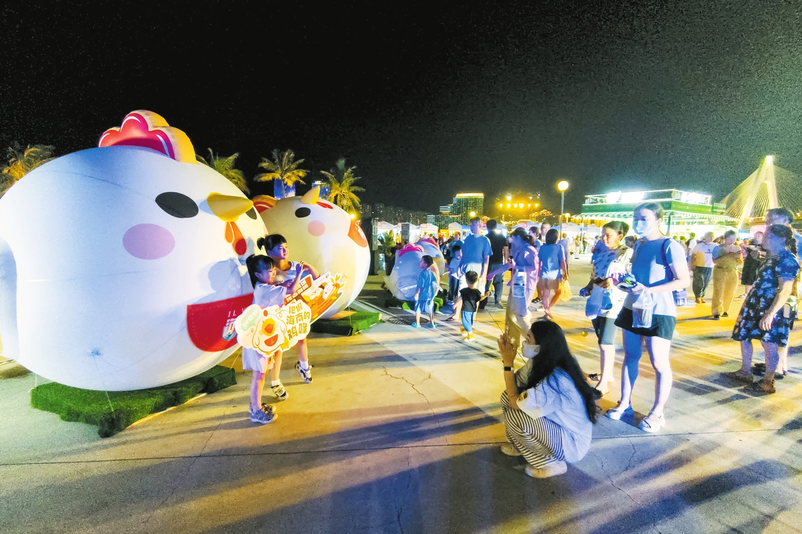 6月18日,在2024年(第二十五届)海南岛欢乐节活动现场,小朋友与可爱的吉祥物合影留念。 本报记者 石中华 摄