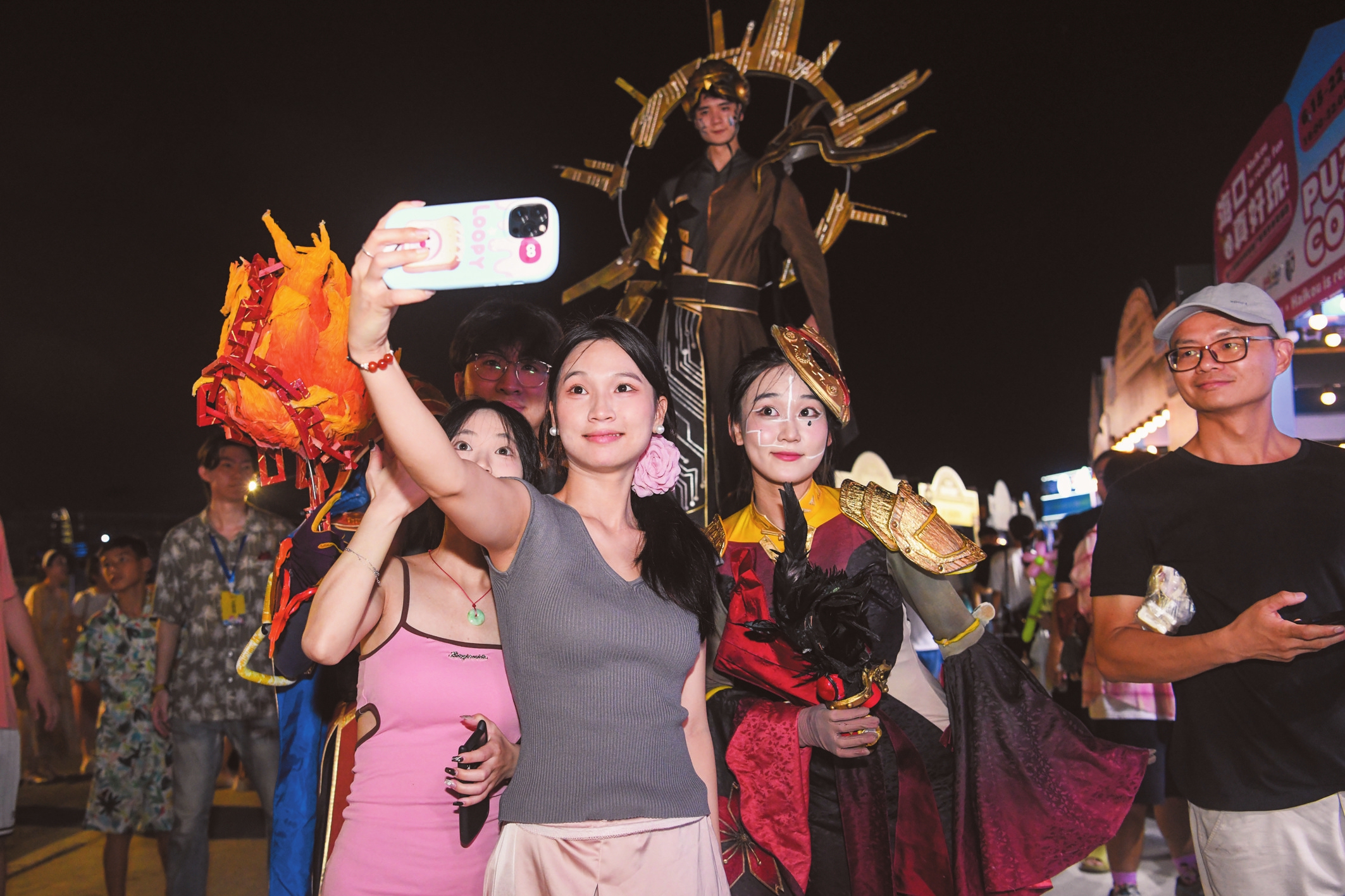 海口欢乐嘉年华系列活动中,市民游客和演出工作人员合影留念。 本报记者 杨鹤 摄