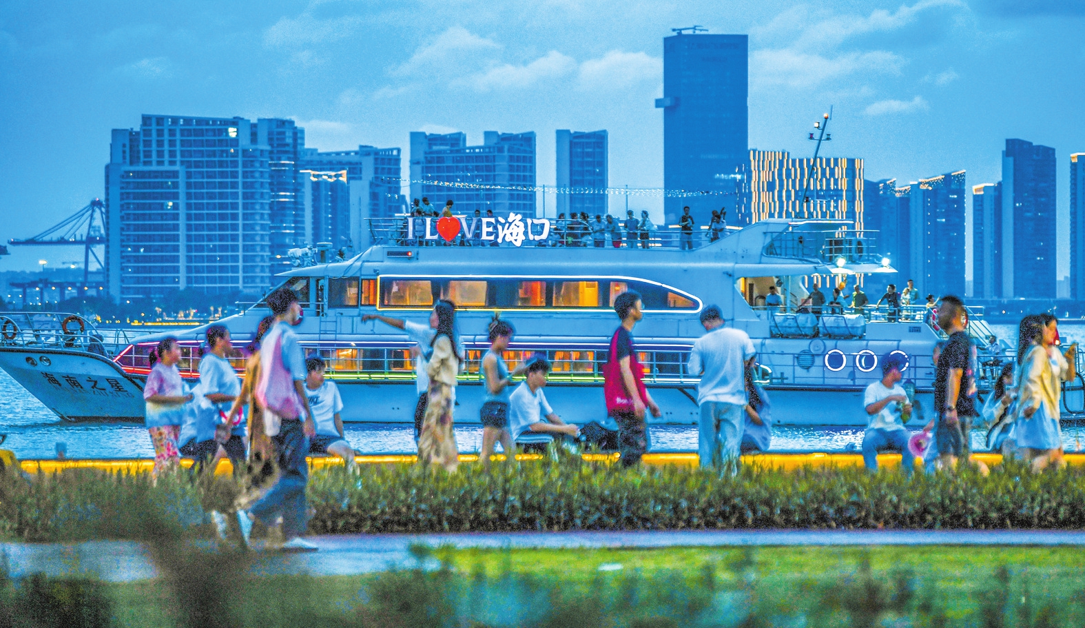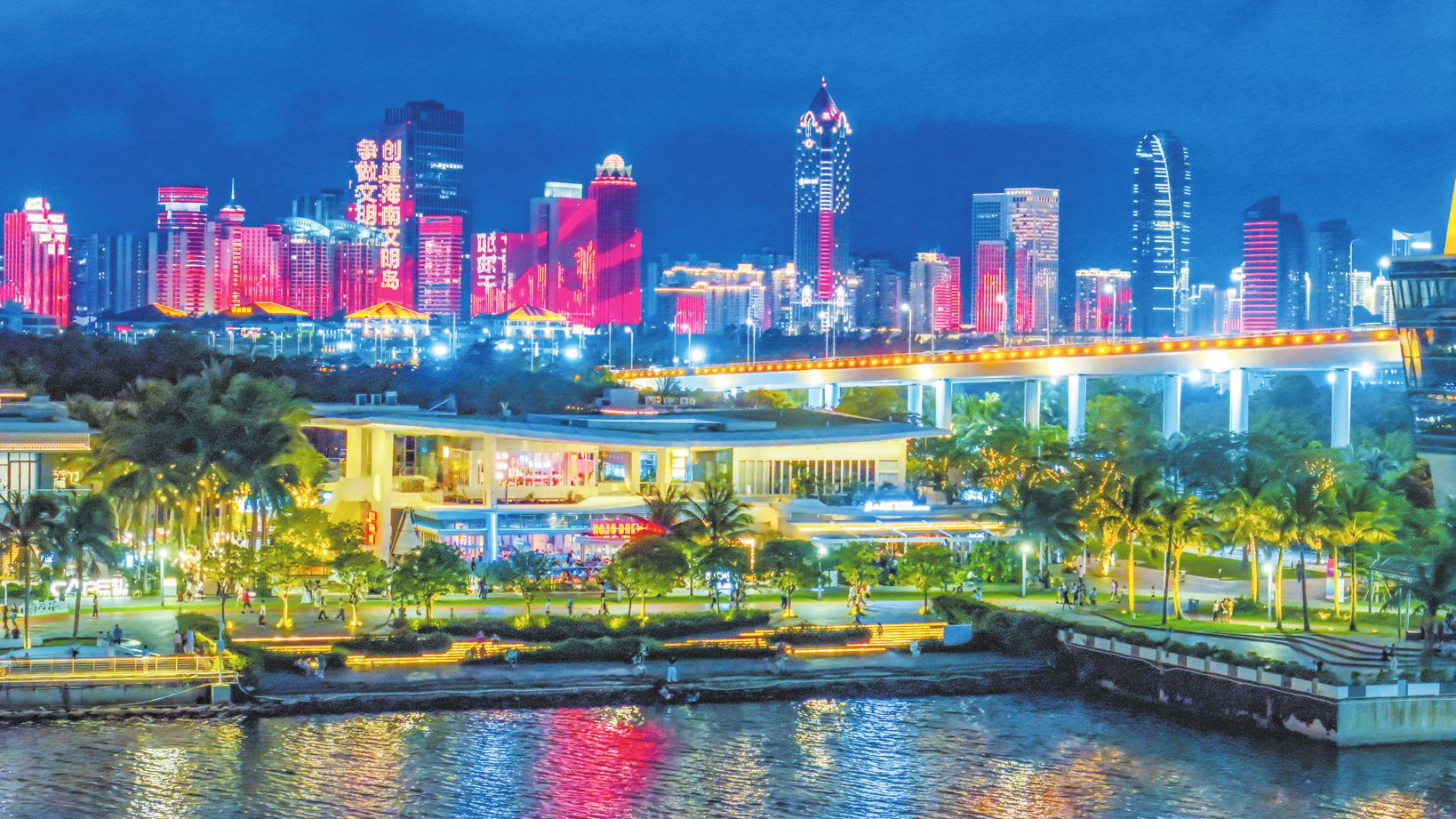海口湾的迷人夜色,吸引不少市民游客来此打卡、游玩,感受夜海口的魅力。本报记者 康登淋 摄