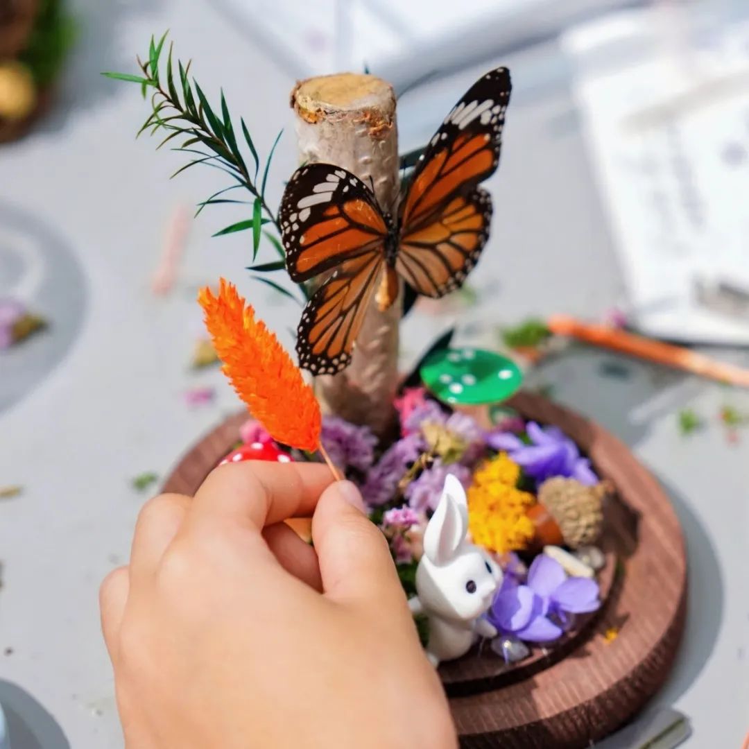 自然艺术作品外,展厅内还将放映克里斯的个人纪录片,展示自然艺术工作中的魅力,讲述昆虫采集与生态环保间的关系。此外,展厅开辟了专门的手工区域,市民朋友们可以选取不同材料自制仿生生物标本,在动手的过程中感受生命的艺术之美。