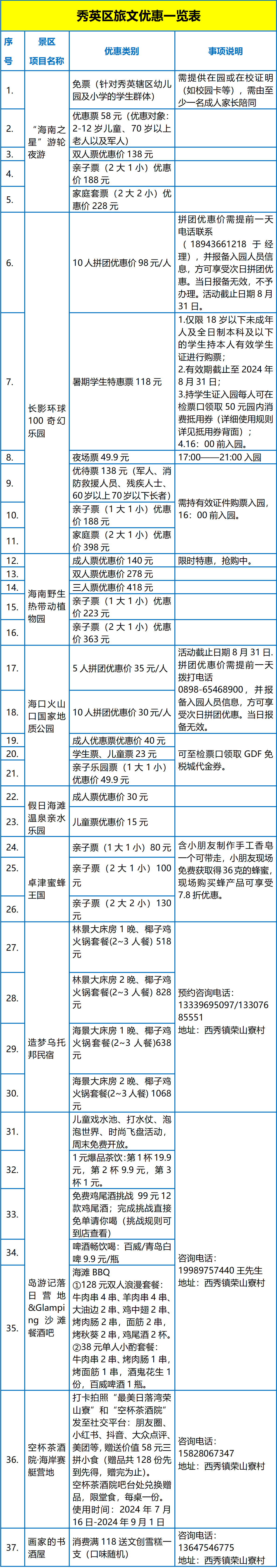 此外,秀英各大景区景点、旅文企业在暑假期间推出了一系列超值玩乐优惠政策。值得一提的是,今年暑假,海口火山口公园和长影环球100奇幻乐园也创新推出了拼团优惠价活动,非常适合企业团建、班级聚会、家庭聚会等体验,不仅可以约亲朋好友共同前往,还可通过微信群或微博、小红书等社交媒体招募团友集中时间前往。