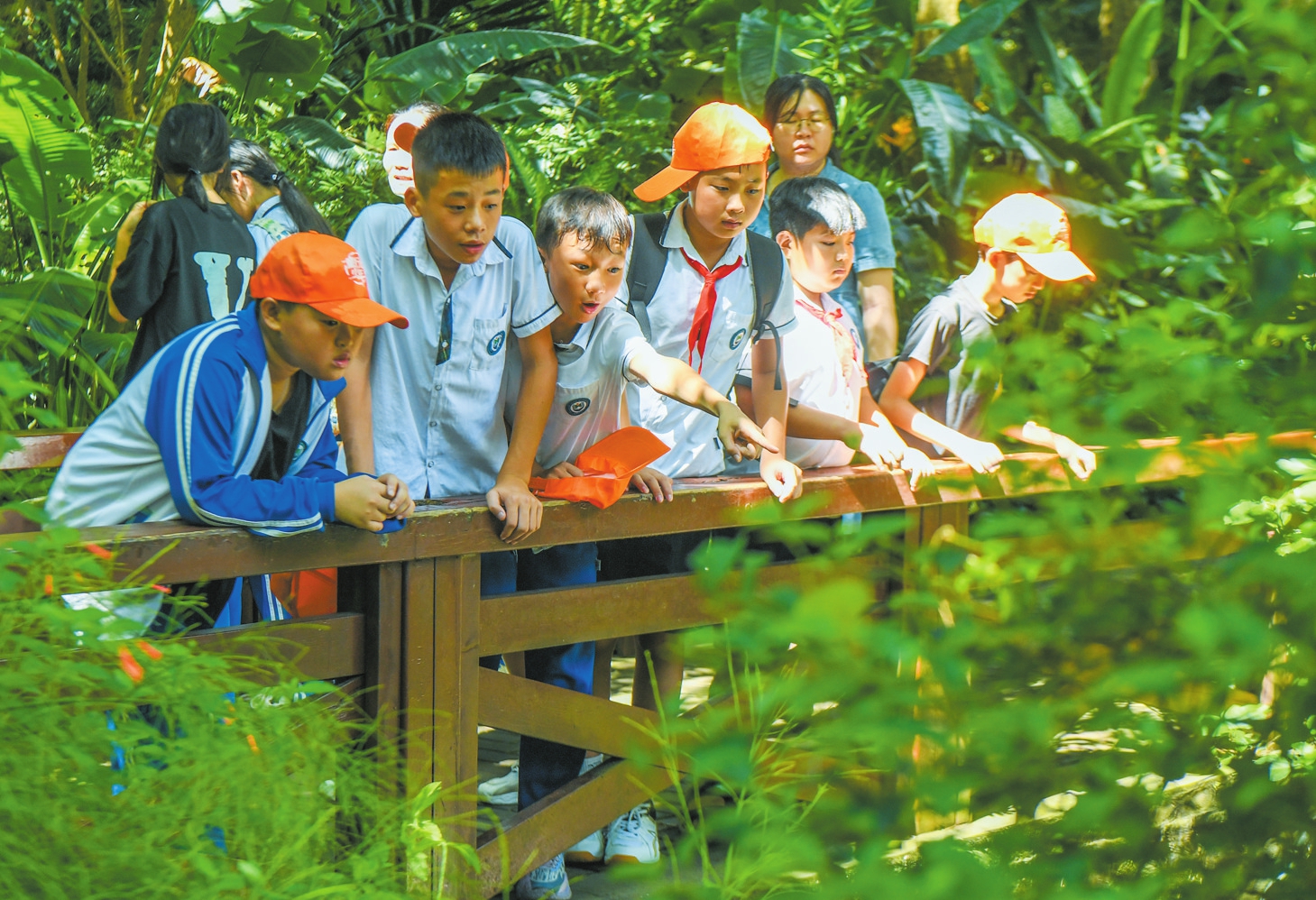 7月8日,青少年在海口热带农业科技博览园内研学观光。 本报记者 康登淋 摄