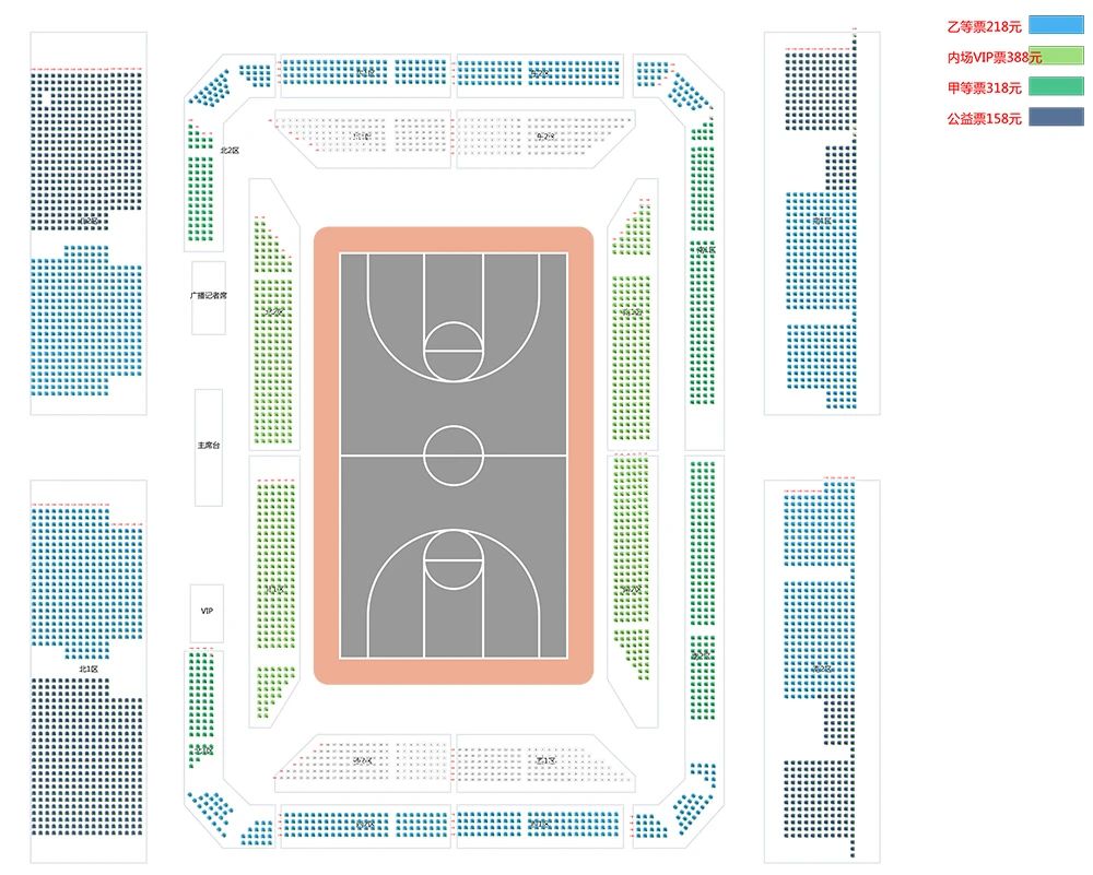 内场VIP票:一层内场南/北区移动座位 内场VIP168元(市场价388元)