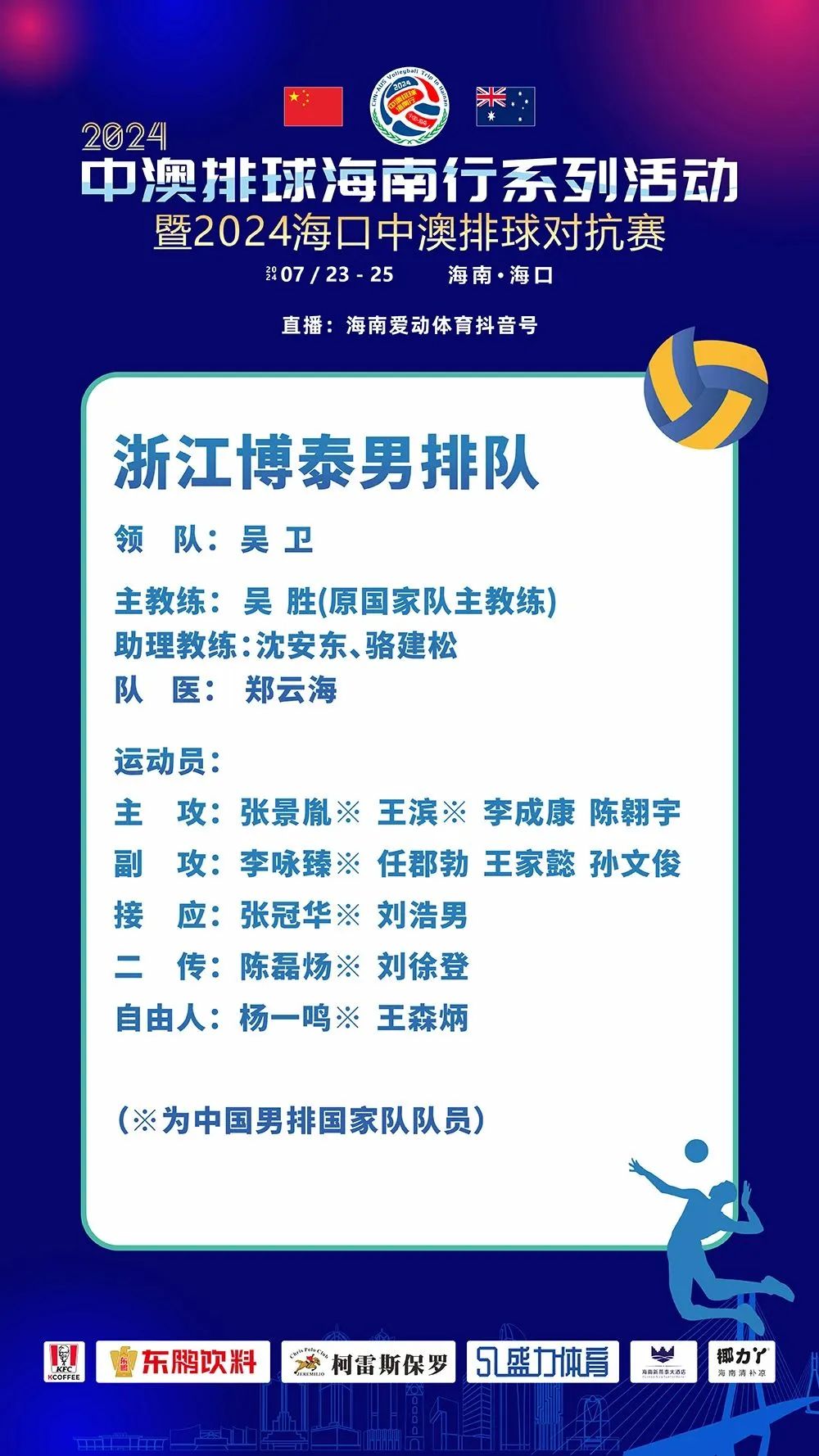 浙江博泰男排将与海南明星队