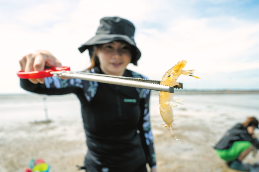 市民游客在滩涂上寻找“小海鲜”。 本报记者 石中华 摄