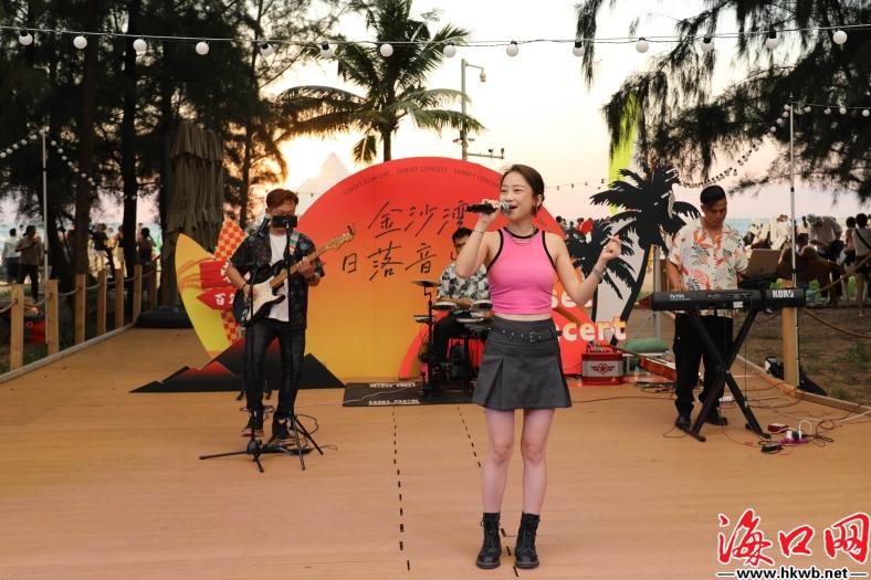 乐队演出、韵律游戏、沙滩市集……8月3日,在海口秀英区荣山寮村金沙湾,一场唯美欢乐的“金沙湾日落音乐会”正在此开唱。