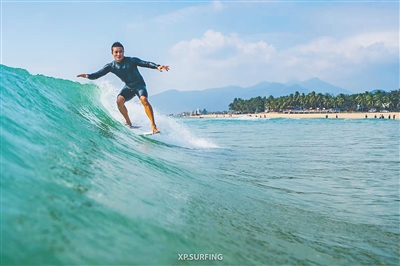 海南冲浪选手黄玮浪尖起舞。 本报资料照片