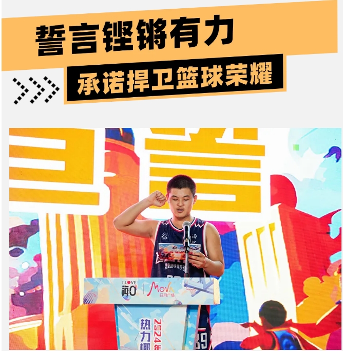 运动员代表付建程与裁判员代表徐辉旺的宣誓,是这场篮球盛宴中最庄严的时刻。运动员们紧握拳头,眼神坚定,誓要以积极、向上、阳光的态度,用汗水和拼搏书写属于自己的篮球传奇;而裁判员们则庄严承诺,将秉持公正、公平、公开的原则,确保每一场比赛的纯洁与神圣。