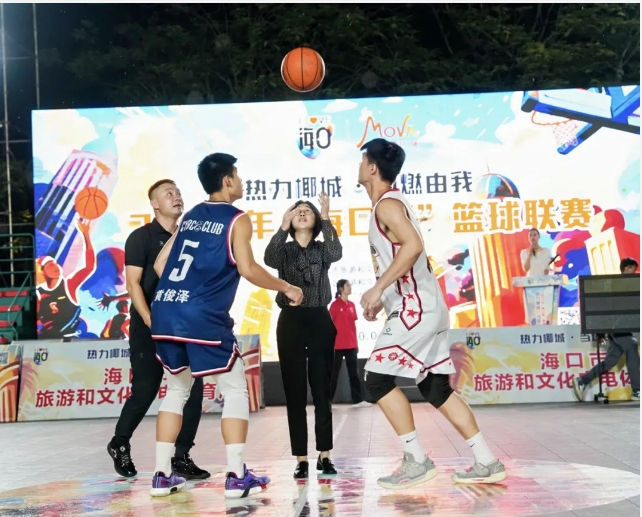 在众人期待的目光注视下,海口市旅游和文化广电体育局总规划师李小青宣布比赛开幕,随后体育科负责人郑郁凰将篮球高高抛起,精彩对决正式开始。