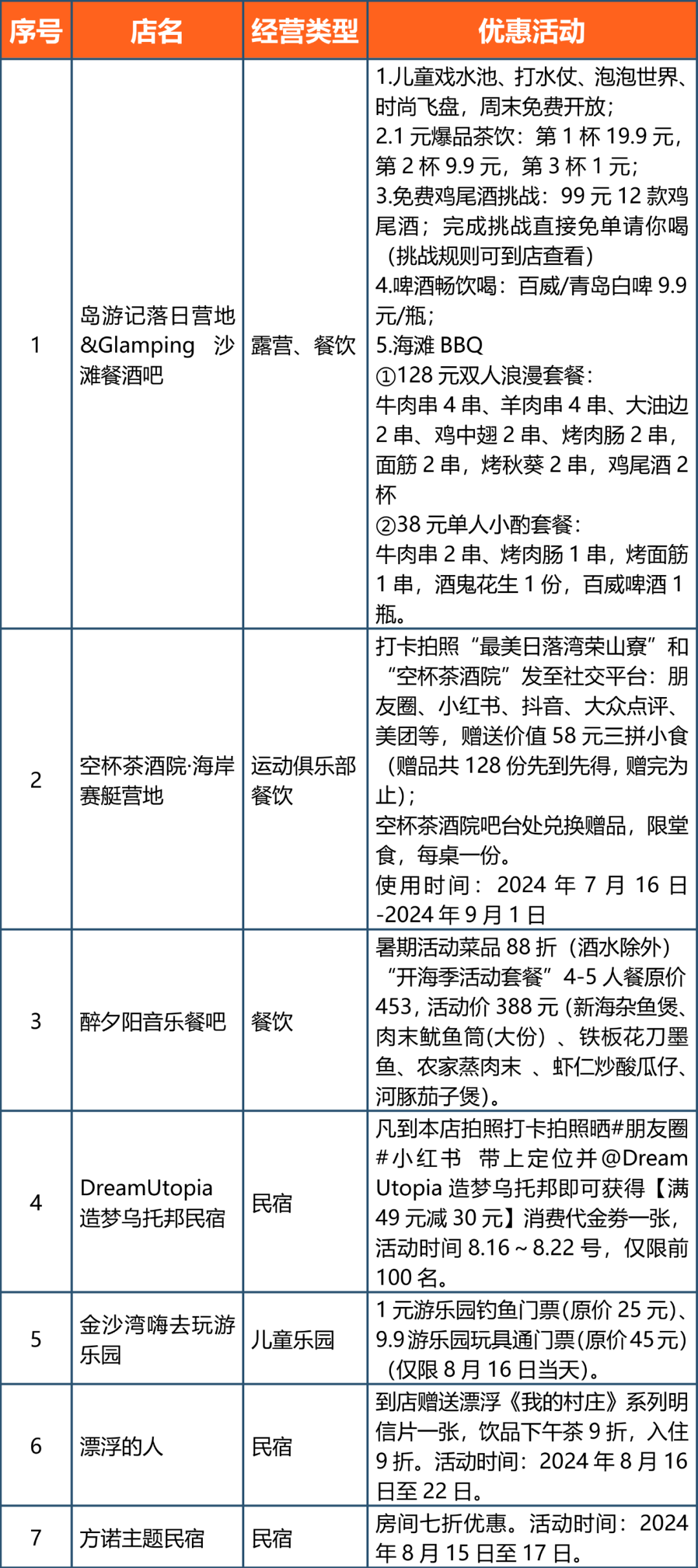 暑期旅游优惠联动促销汇总表