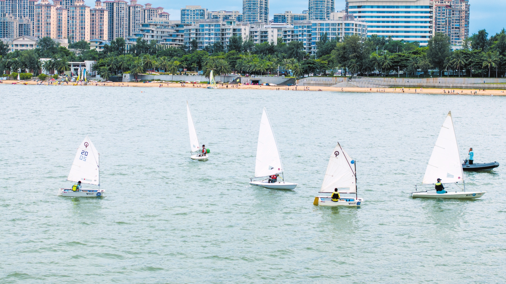 8月14日,在海口西秀海滩海域,不少市民游客在此学习帆船帆板,体验水上运动的乐趣。 本报记者 杨鹤 摄