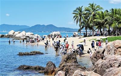 游客在三亚天涯海角游览区游玩。(新华社发)