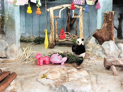 海南热带野生动植物园大熊猫“舜舜”。