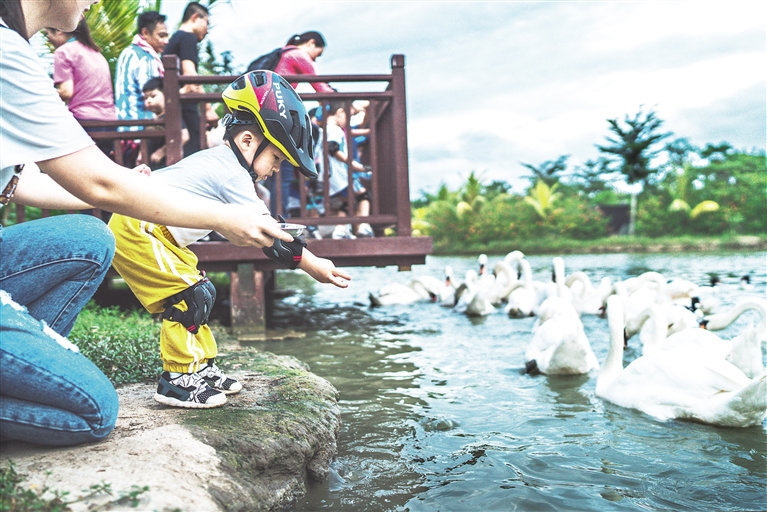 游客在天鹅湖动物基地玩耍(资料图片)