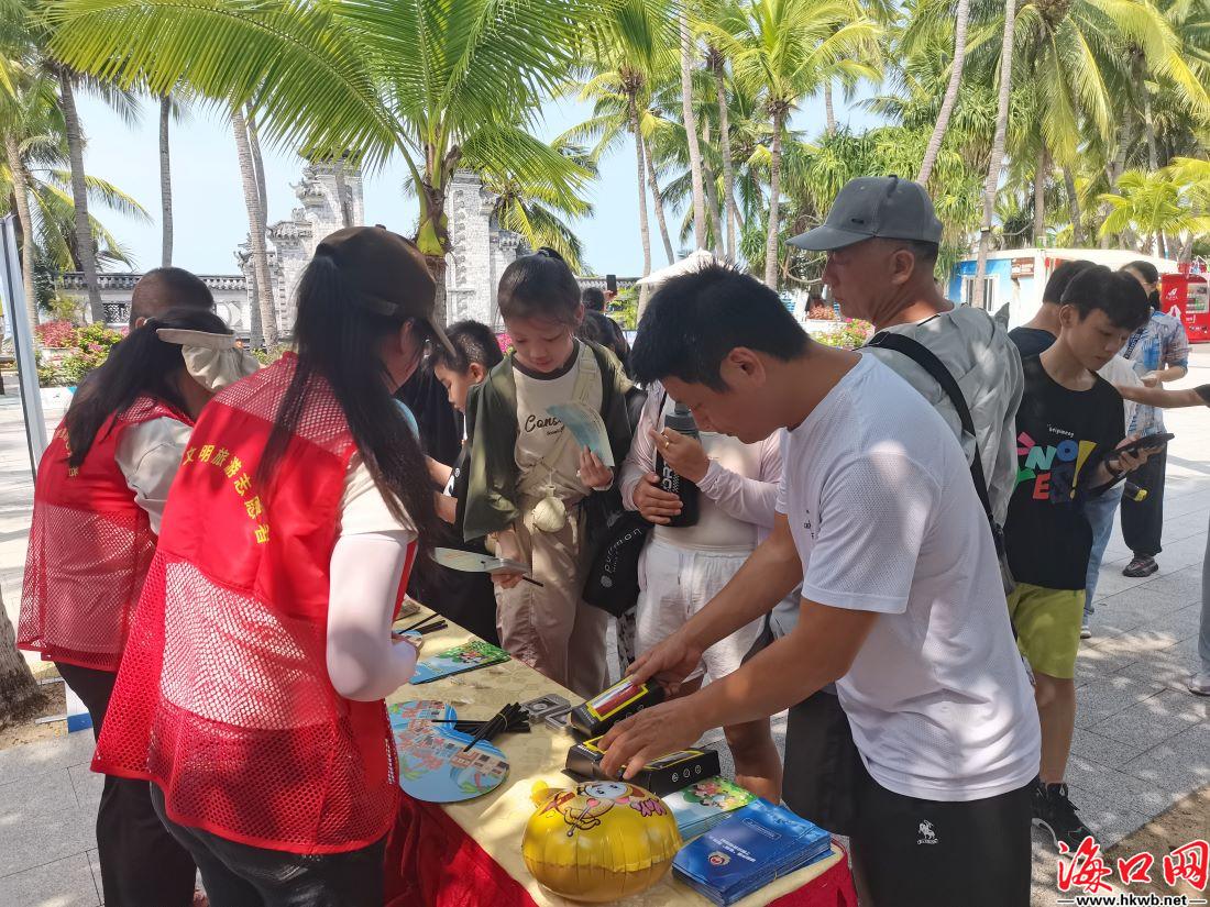 活动倡导文明旅游,并向来往游客赠送带有相关元素的小礼物。(海南省旅游协会供图)