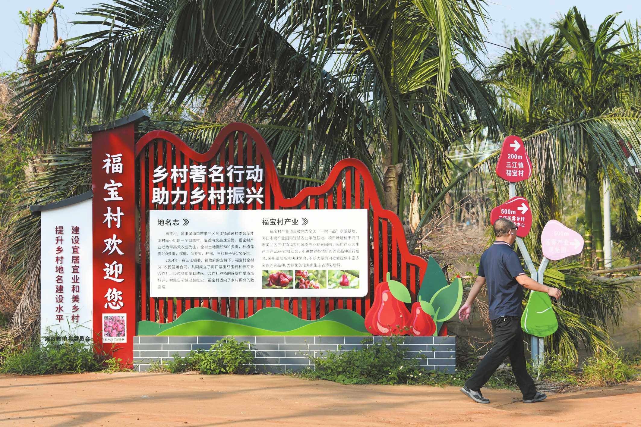 10月9日,在美兰区三江镇茄苪村委会福宝村,道路边设立有融合三维码技术的特色村牌。本报记者 杨鹤 摄