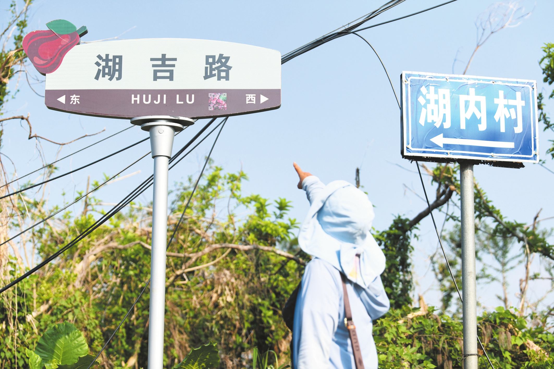 连接美兰区三江镇茄苪村委会湖内村与吉尾村的村路被命名为湖吉路,路旁设立了颇具设计感的路牌,为村民与市民游客指引方向。本报记者 杨鹤 摄