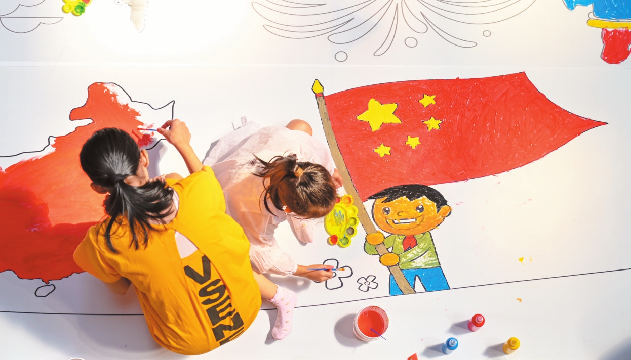 10月1日,首届海口城市艺术周系列活动之“百名儿童绘祖国”绘画活动上,孩子们填色作画,庆祝新中国成立75周年。本报记者 石中华 摄