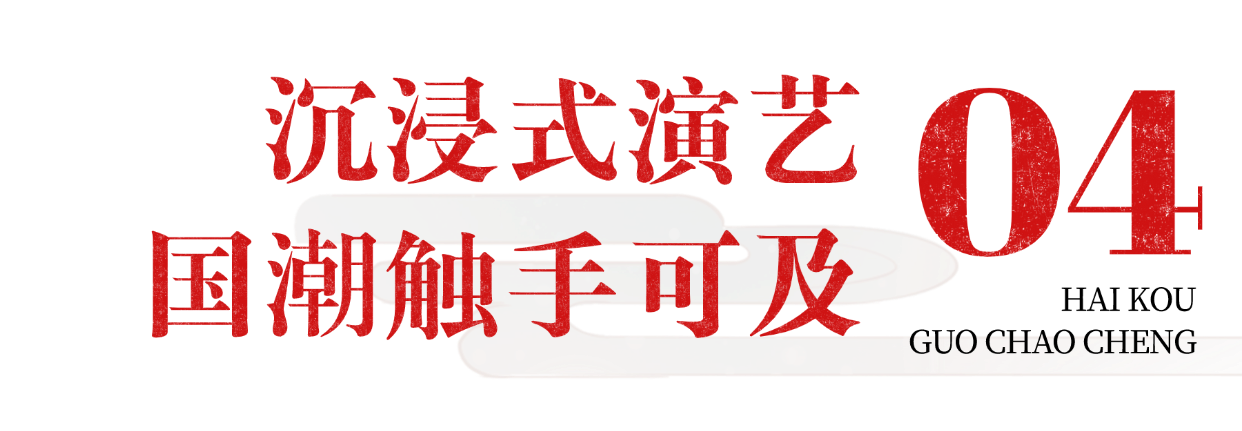 国潮城演艺是项目的一大特色,现场共有7个演出点位,多点位同时演出,演艺节目每天多至23场,以更路簿为背景,穿越千年时光长廊,做一场悠悠南海梦。
