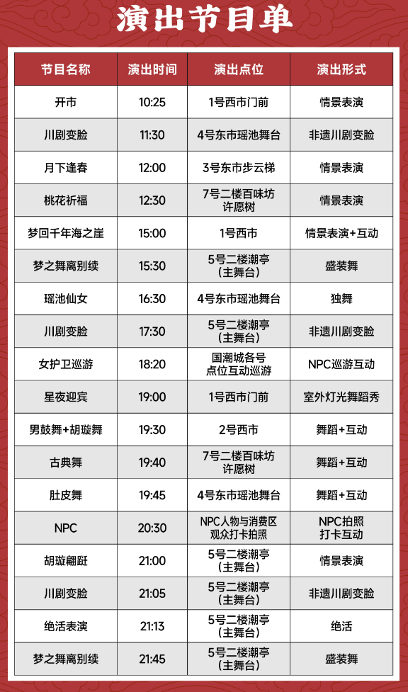 备注:具体演出时间、内容请以现场实际为准