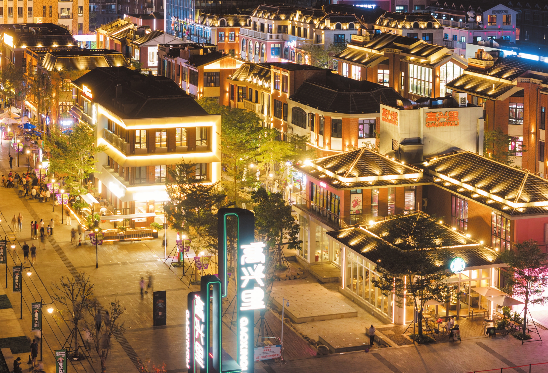 夜幕降临,市民游客打卡海口高兴里特色文化商业街区。本报记者 苏弼坤 摄