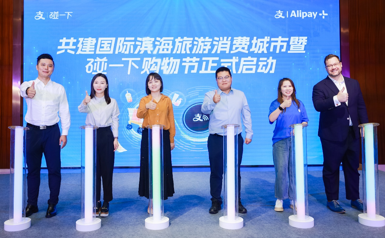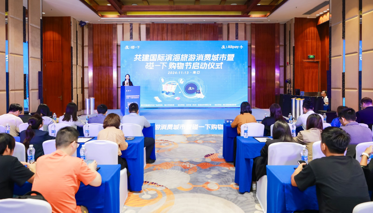 11月13日,“共建海口国际滨海旅游消费城市暨碰一下购物节”启动仪式在海口开幕。海口市旅游文体局副局长张艳、海口市商务局副局长公龙,支付宝综合体行业南区总经理游向月、支付宝外国人支付业务负责人柯赛虹出席活动。