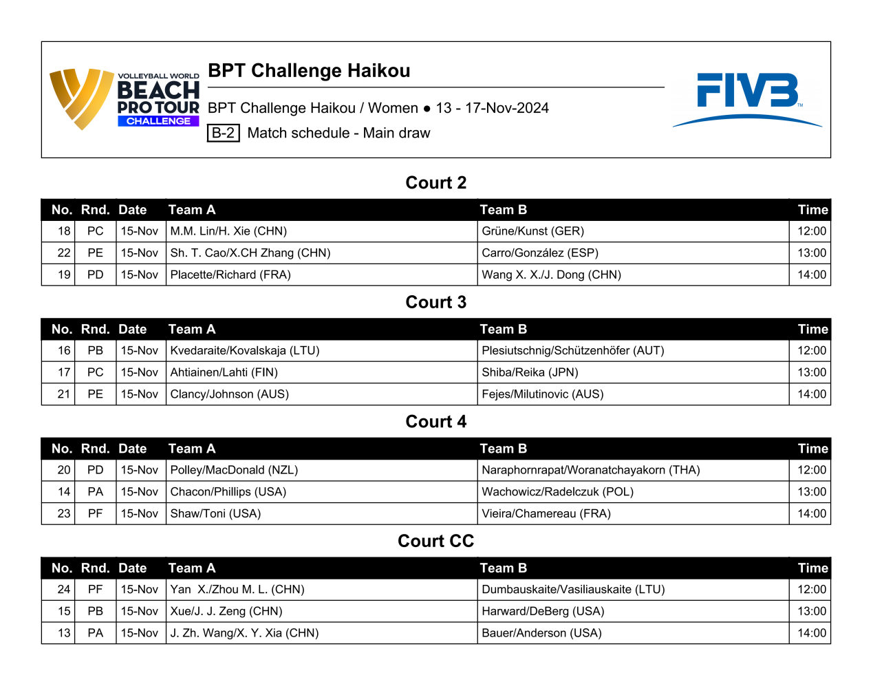 2024年11月14日,2024世界沙滩排球职业巡回赛挑战赛(中国海口站)迎来了激动人心的第二日赛程。中国8支队伍参加小组赛,他们以卓越的表现点燃了赛场氛围,以精湛的球技和坚韧不拔的精神,赢得了现场观众的阵阵喝彩。
