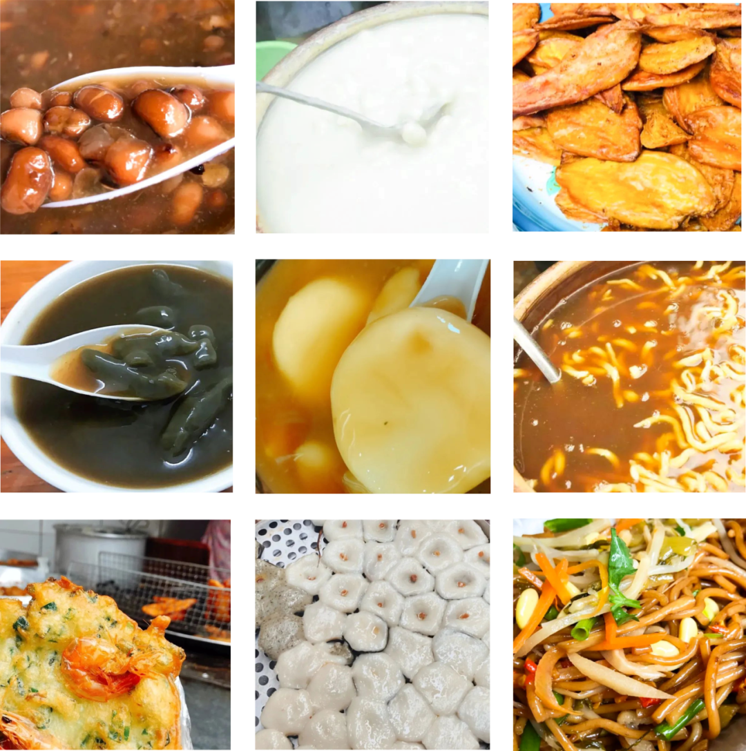 这里的美食小吃店比比皆是,巷口的美食更是让人眼花缭乱,垂涎欲滴。喜欢甜口的有各种糖水,可以选择甜薯奶、芝麻糊、红糖水糍粑、九层糕……喜欢咸口的有生腌、炸鸡翅、炸海鲜等等。
