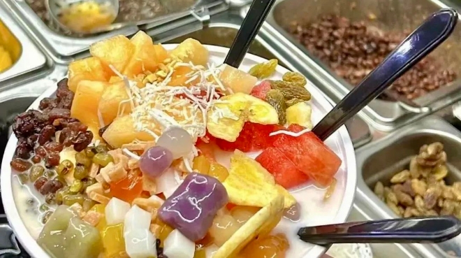 清补凉始于公元前219年,相传苏东坡在海南第一次吃到清补凉,便当场作诗称赞:“椰树之上采琼浆,捧来一碗白玉香”。来自大使的美食点评:“椰奶清补凉很像新加坡的摩摩喳喳(Bubur Cha Cha),里面也有仙草和芋头,这道甜品清凉可口。”