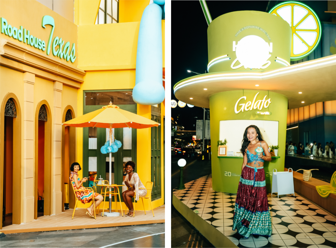 瞬移异域风情小镇,醒目的清新绿,吸晴的治愈橙,冷暖色系撞色组合,随手一拍即刻出片。色彩缤纷的时尚街区,真的好chill~~