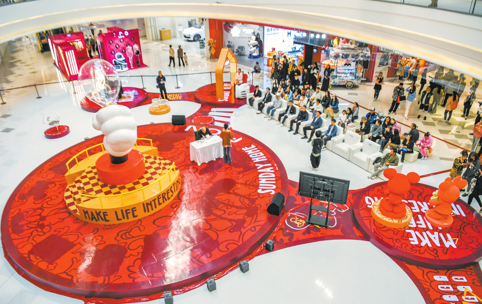 随着消费者需求的变化,许多商圈不仅“拼商品”,更“拼软实力”,推出形式多样的文化活动,让商业更有“文化味”。位于海口上邦百汇城的瓦咛街市内,市民游客或体验“非遗”漆扇制作,或在“非遗”老爸茶里品味慢生活。“我们加入了很多‘非遗’元素,让更多人了解优秀传统文化魅力,增强消费者的认同感。”上邦百汇城营销主管黄植柠介绍。