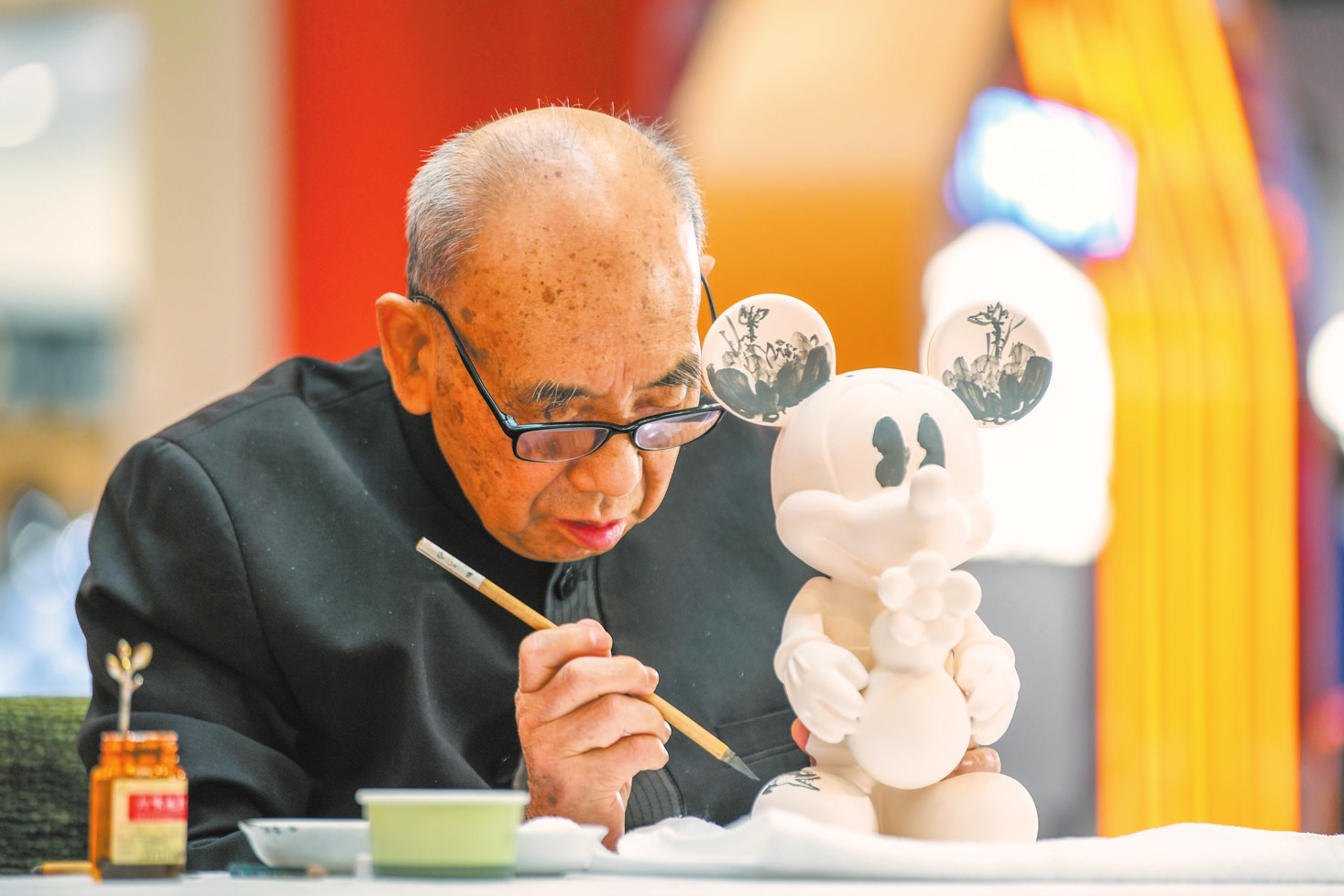 “青花瓷承载着中华民族的智慧与技艺,而米奇是我们很多人喜欢的卡通形象,两者结合既复古又现代。”市民陈小燕正在逛街,看见“非遗”传承人正在潜心创作,不由得停下脚步,静静欣赏。