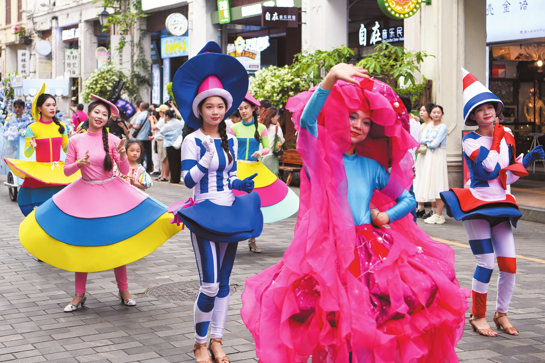 5月1日,“向海而歌·奇幻巡游季”活动在骑楼老街举行,结合海口传统文化、时尚元素等内容,为市民游客打造消费娱乐新场景。本报记者 杨鹤 摄